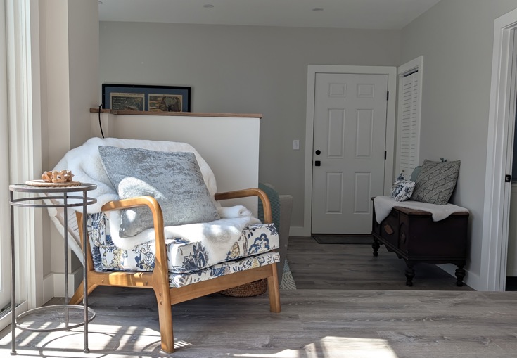This fresh space balances history with beautiful new finishes. It is a stand-alone property with an open concept, loft-style one bedroom king, a full kitchen, 3/4 bath, cozy living and a private back patio. The space sits next door to Body Mechanix Massage and is within walking distance to historic downtown Dover, just a short drive to many seacoast beaches and minutes from UNH.
